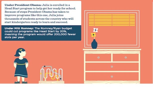 Picking up from my earlier discussion of the way cross-sectional data get turned into (sometimes misleading) longitudinal stories, it’s been about a year since the Obama campaign unveiled The Life of Julia, a slide show that contrasted Obama’s and Romney’s policies with regard to their effects on women at different ages. Stated that way it would be pretty standard and uncontroversial, but in fact it turned into a flashpoint for the early part of the campaign. Why? Precisely because it was not a list of cross-sectional promises — What President Obama will do for children; What President Obama will do for seniors; etc. would be standard campaign web site headings — but was turned into a longitudinal story. These were not 12 different women, of different ages, who would putatively be helped by the president’s policies, but a single woman “Julia” who seems to be spending her whole life looking for government programs to scrounge from. Of course, it only seems this way because of the way this infographic interacts with our expectations of a biographical narrative, where we expect to be seeing the high points of her life, and every one of them involves government services. Creepy! It’s no wonder some critics were reminded of cradle-to-grave socialism.