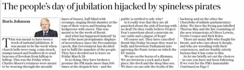 So, the small-government Tory thinks it’s a perfectly legitimate exercise of European centralised power to compel shopkeepers in Sicily and schoolchildren in Madrid to adjust their body clocks* in order to spare English farmers the annoyance of having to consciously adjust the clocktime when they get out of bed to tend to their harvest. But to rescind this compulsion, that is insufferably arrogant.